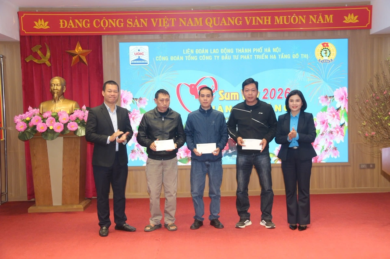 Sáng ngày 05/02/2026, tại trụ sở Tổng công ty Đầu tư phát triển Hạ tầng đô thị UDIC, Công đoàn Tổng công ty long trọng tổ chức Chương trình “Tết Sum vầy - Xuân ơn Đảng”, hỗ trợ đoàn viên, người lao động có hoàn cảnh khó khăn nhân dịp Tết Bính Ngọ năm 2026. Đây là hoạt động nằm trong chuỗi các hoạt động hướng về cơ sở, đoàn viên, người lao động nhân dịp Xuân Bính Ngọ; nhằm chia sẻ, kết nối yêu thương, với mong muốn một mùa xuân tươi đẹp, bình an sẽ đến với mọi người, mọi nhà.